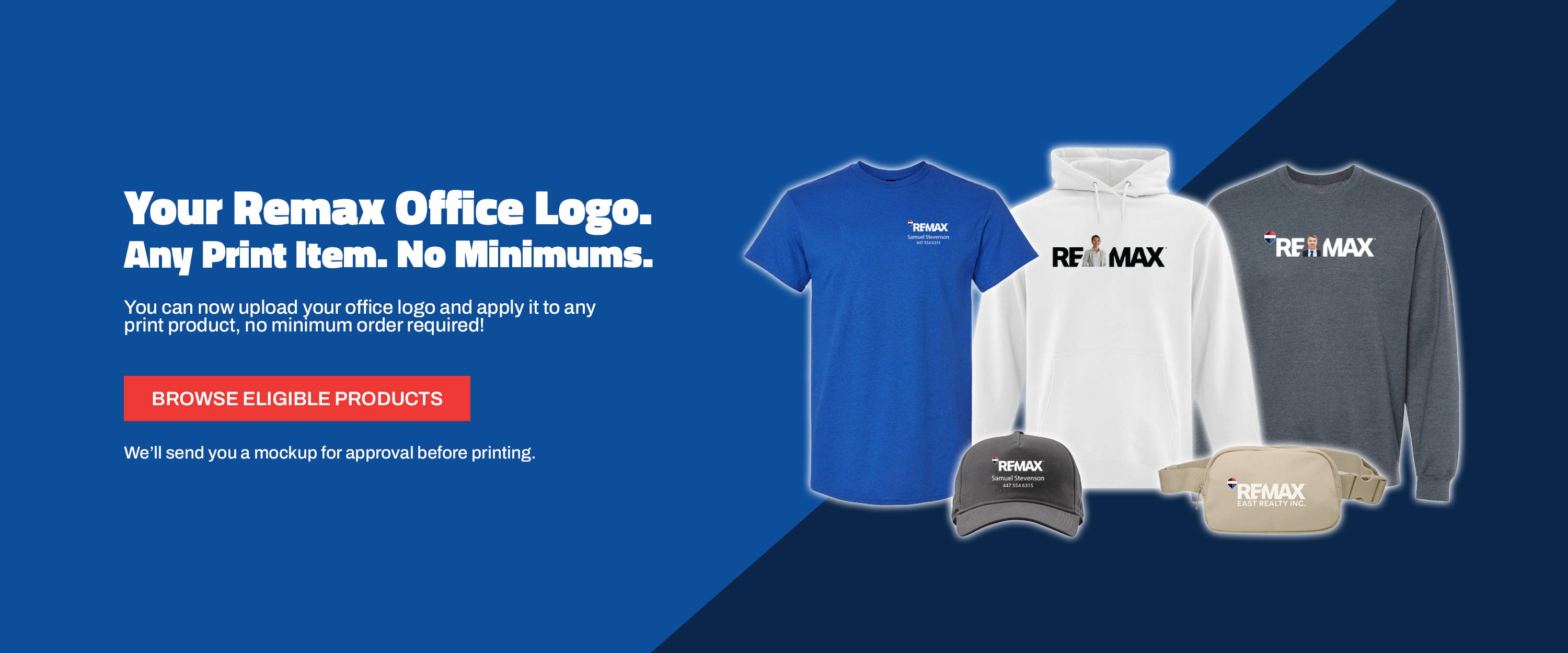 We make it simple to showcase your REMAX office branding across nearly all of our products.