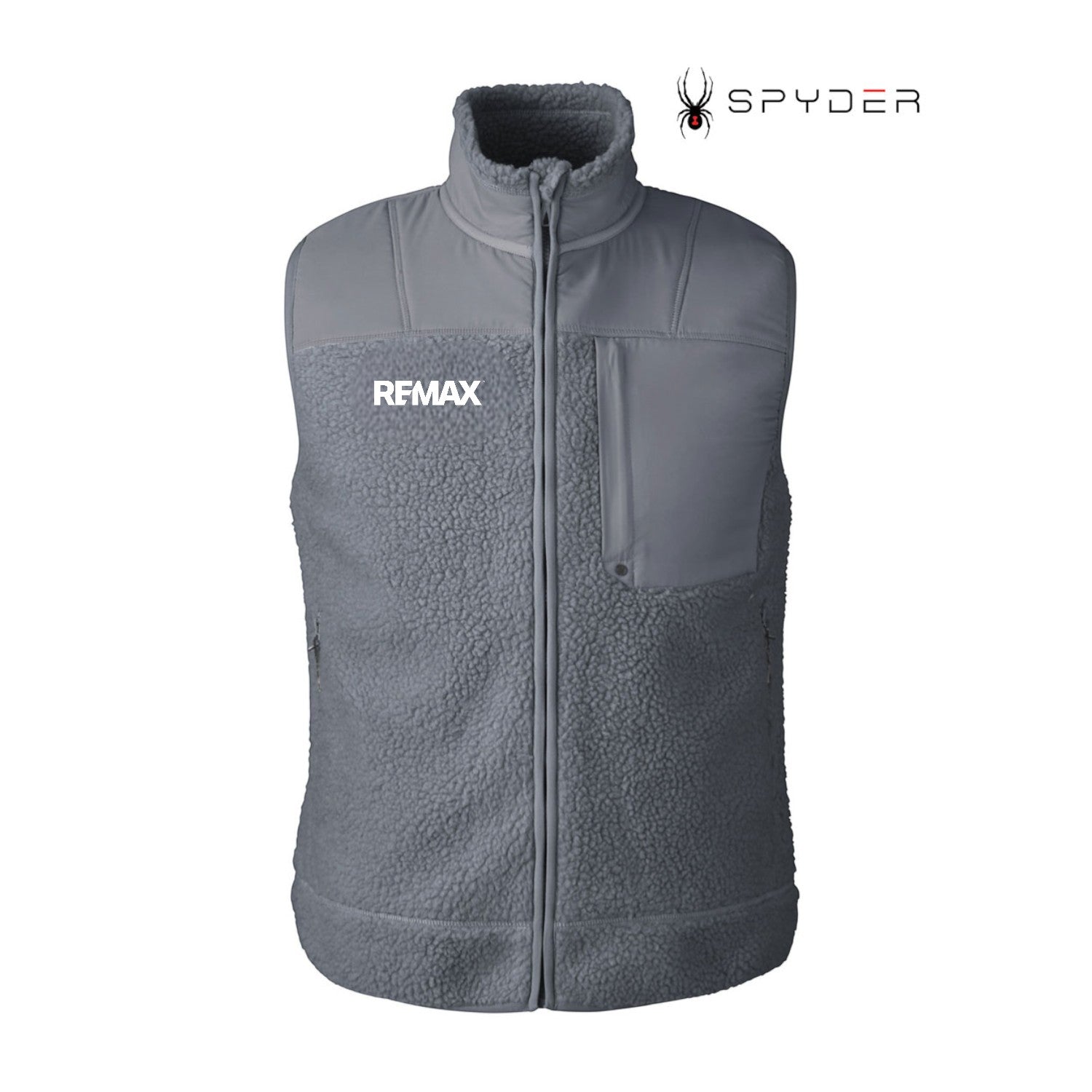 • Vertical-zippered chest pocket with stylized Spyder grommet