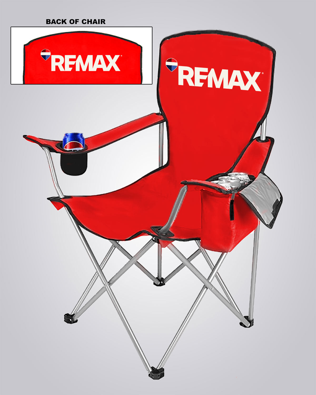 New Design Cool Camping Chair With Side Pocket Cooler - Red - Brand Refresh - Full Color Logo
